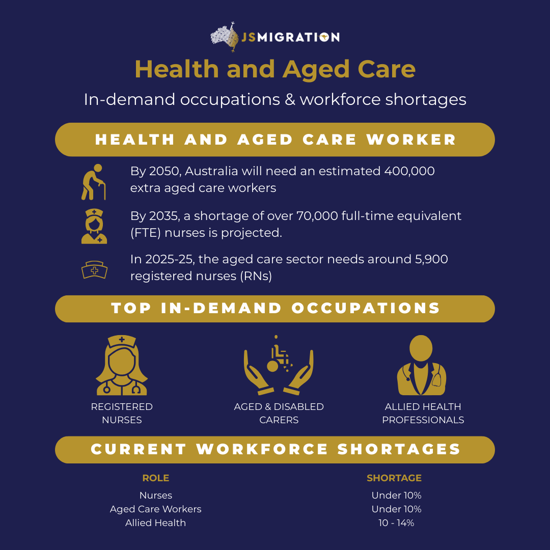 - The demand for health and aged care workers will only multiply as Australia’s population ages. Without significant workforce growth, gaps will widen — especially in rural and regional areas.