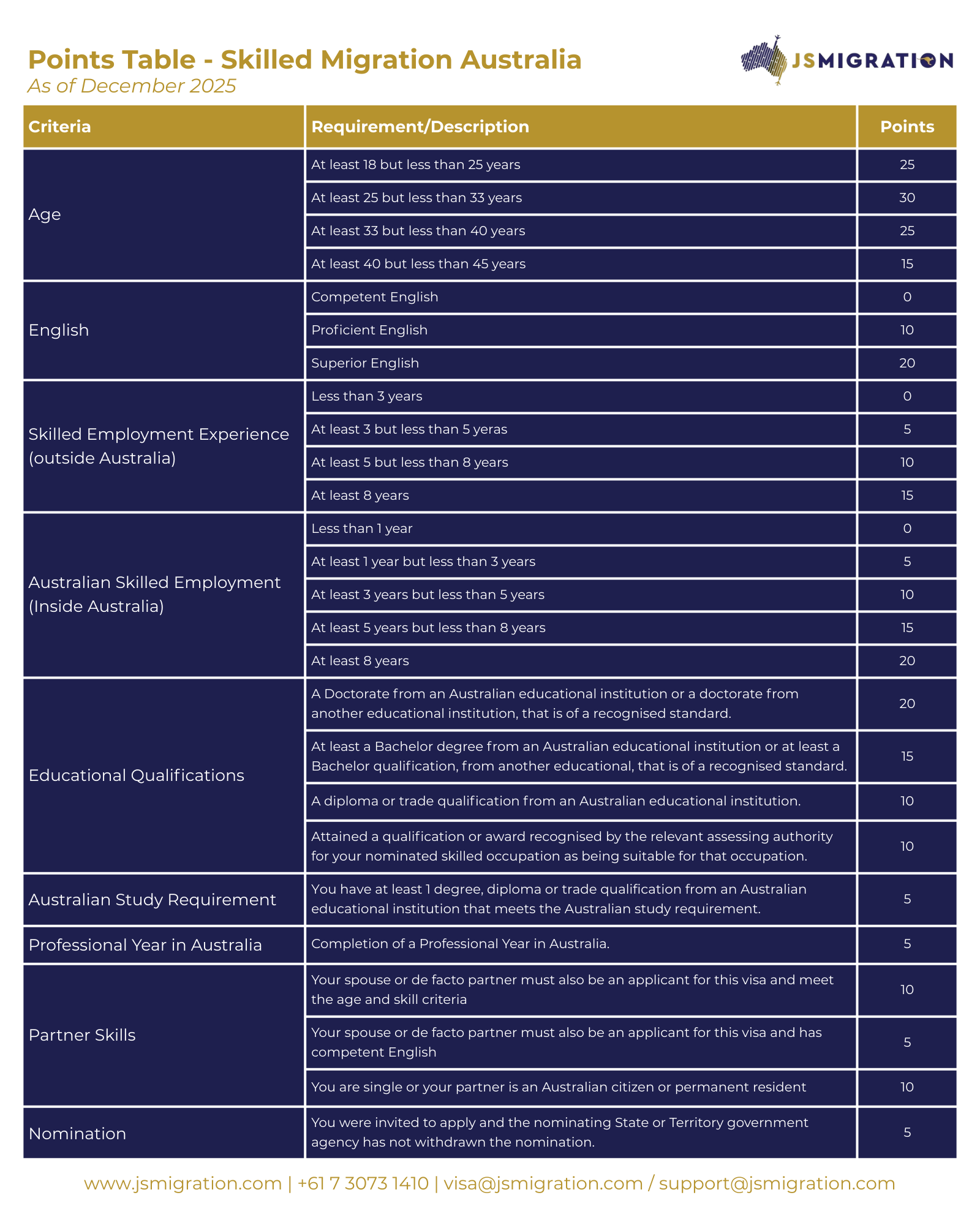 Each state/territory (NSW, VIC, QLD, SA, WA, etc.) has its own criteria, invitation rounds, and occupation priorities — and often additional requirements such as: